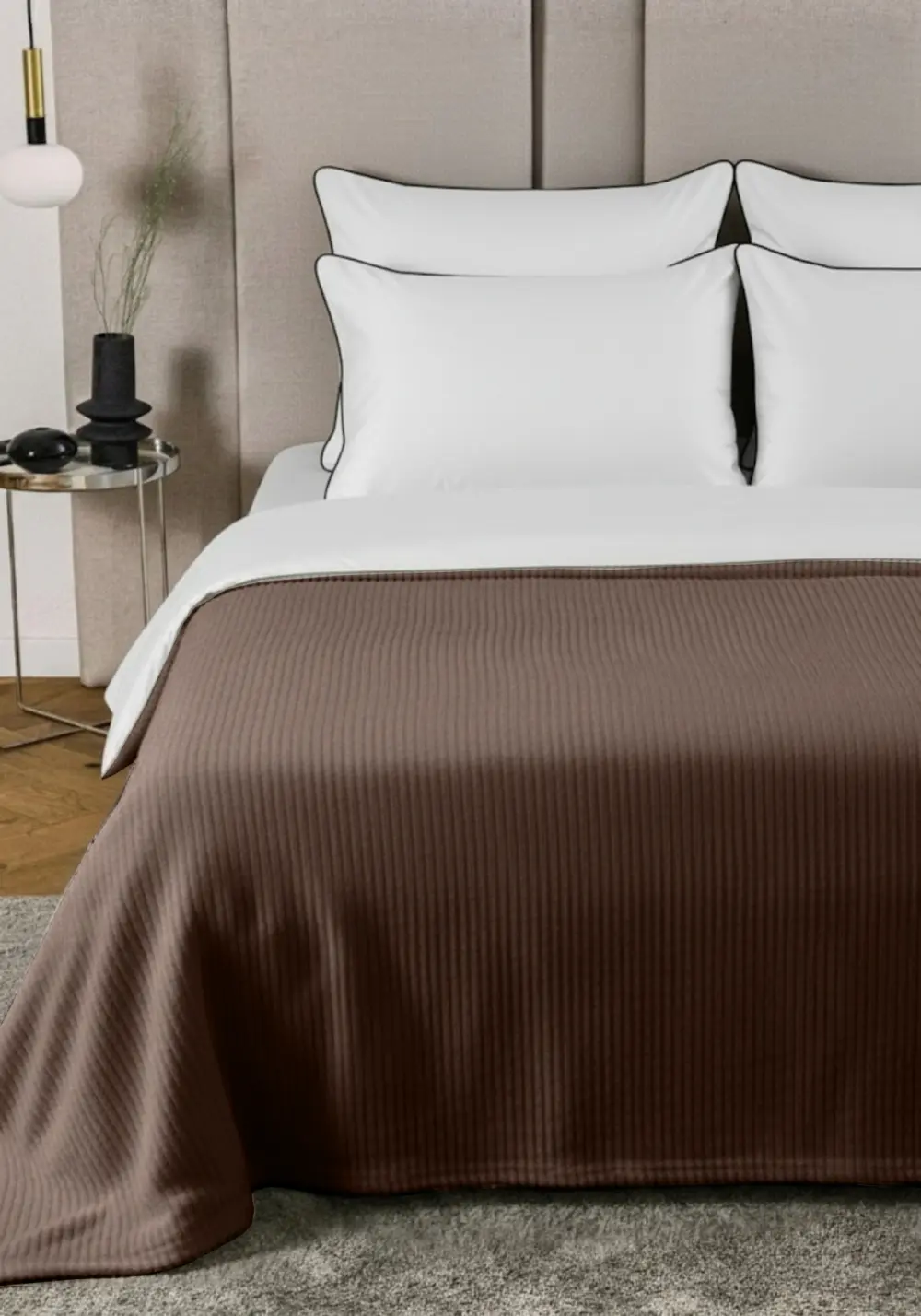Do produkcji narzut wykorzystywana jest bawełna z długich włókien, uznawana za jedną z najbardziej ekskluzywnych odmian. Dzięki temu tkanina jest bardziej wytrzymała, odporna na uszkodzenia i przyjemniejsza w dotyku. Przędze są dodatkowo skręcane specjalnymi technikami, co zwiększa ich odporność, jednocześnie zachowując subtelny, elegancki wygląd. Narzuty MARO HOME zachowują swoje właściwości i estetykę nawet po wielu latach użytkowania.