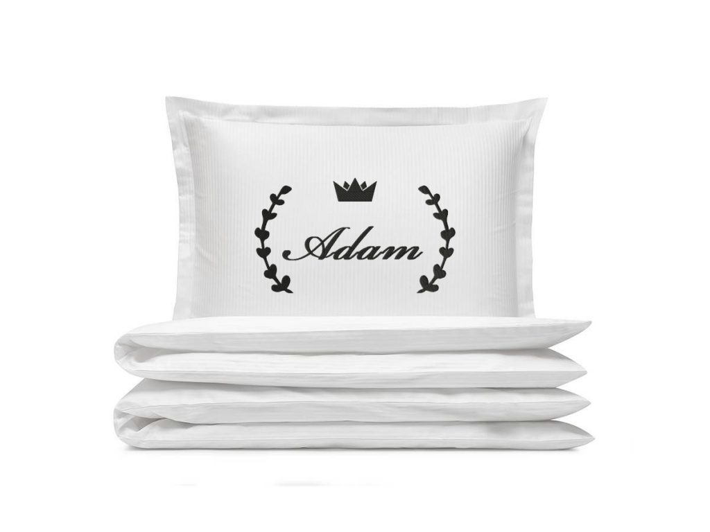 Haft znajduje się na środku poduszki. Indywidualny projekt sprawia, że pościel jest niepowtarzalna.