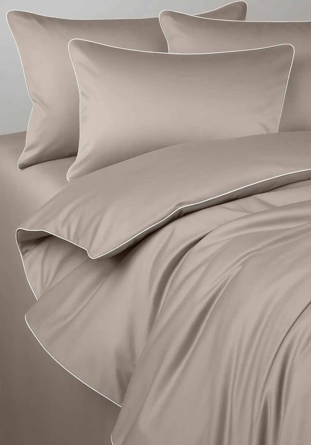 Pościel satynowa SAN ANTONIO - latte beż z białą lamówką