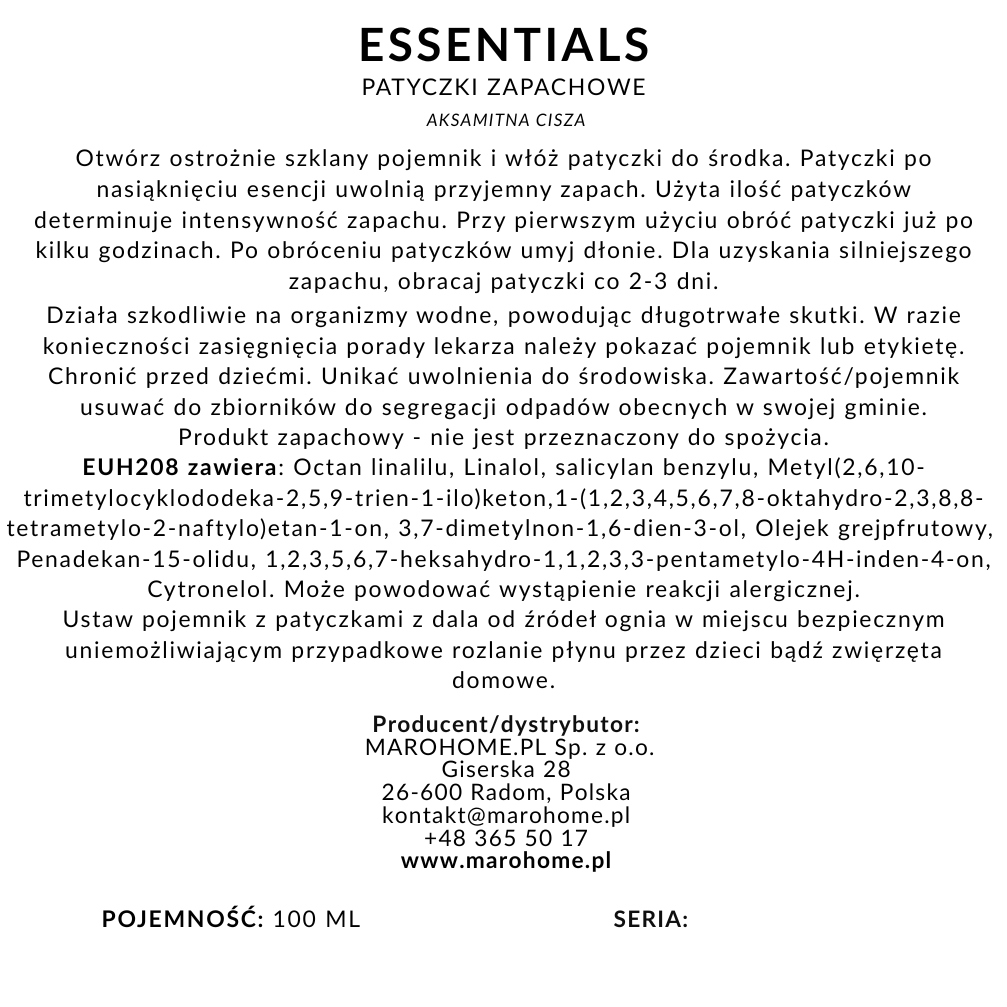 Każda kompozycja MARO HOME powstaje z wysokiej jakości olejków zapachowych, dzięki czemu zapach jest stabilny, nasycony i utrzymuje się nawet do 8–10 tygodni. Patyczki rattanowe rozprowadzają aromat w sposób ciągły, tworząc subtelne tło – wyczuwalne, ale nie nachalne. Wnętrze zyskuje bardziej dopracowany charakter, a atmosfera staje się spójna i pełna harmonii.