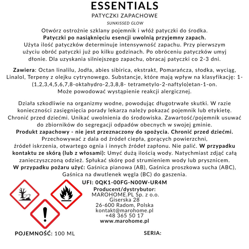 Nasze dyfuzory są zamykane szczelnym korkiem, aby bezpiecznie przetrwały transport. Podczas jego wyjmowania oraz wkładania/przekładania patyczków – może zdarzyć się, że na etykietę spadnie kilka kropel płynu. Ponieważ stosujemy wysoko skoncentrowaną kompozycję zapachową, jej naturalną właściwością jest reagowanie z folią oraz tuszem i delikatne rozpuszczanie nadruku. To nie jest wada produktu i nie wpływa na użytkowanie dyfuzora w żaden sposób.