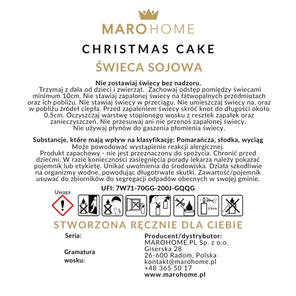 Baza karmelowo-waniliowa nadaje świecy efekt „rozpływającego się w cieple ciasta”. To nie jest zapach przesadzony - to luksusowy comfort scent, który wprowadza w dom radość i słodki spokój.