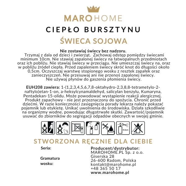 Skład: naturalny wosk sojowy, kompozycja zapachowa, knot