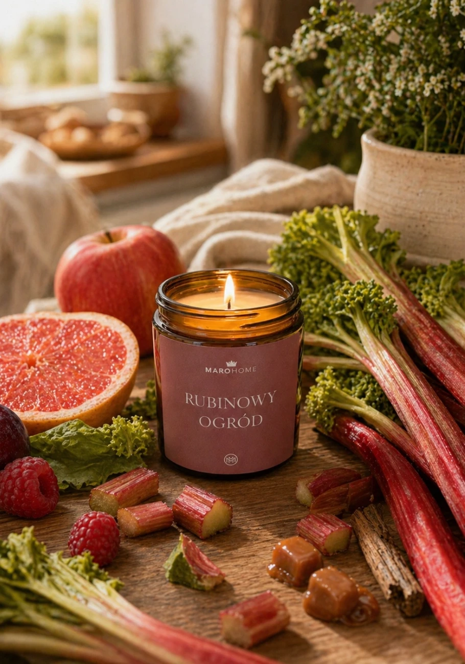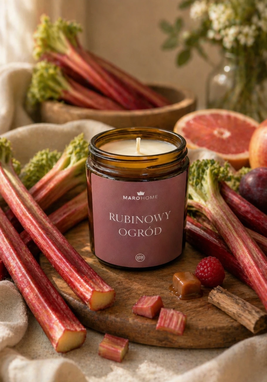 To świeca dla tych, którzy lubią owocowe zapachy, ale nie chcą banalnej słodyczy. Rubinowy Ogród jest świeży, apetyczny i otulający jednocześnie. Pięknie wypełni salon, kuchnię lub sypialnię zapachem soczystego rabarbaru, dojrzałych owoców i miękkiego domowego ciepła.
